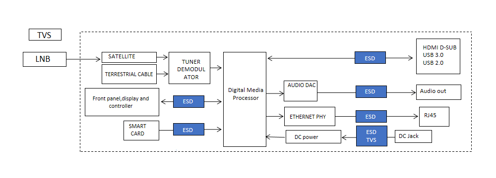 Telecommunication Yangjie Technology provides solutions for communication port applications, in set-top box and Cable Modem and other applications, TVS, Schottky diode power loss, high efficiency.